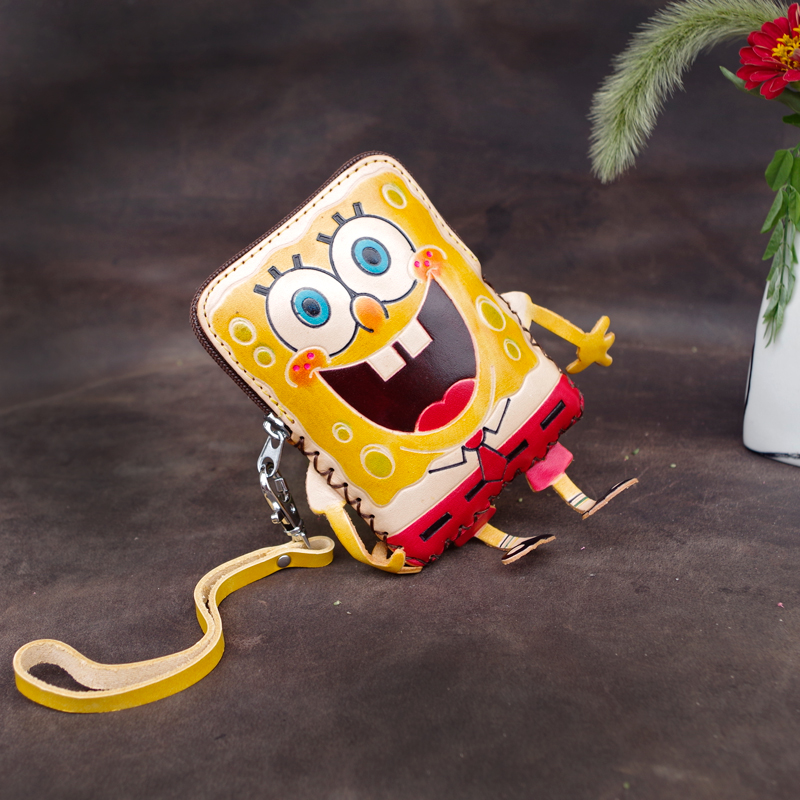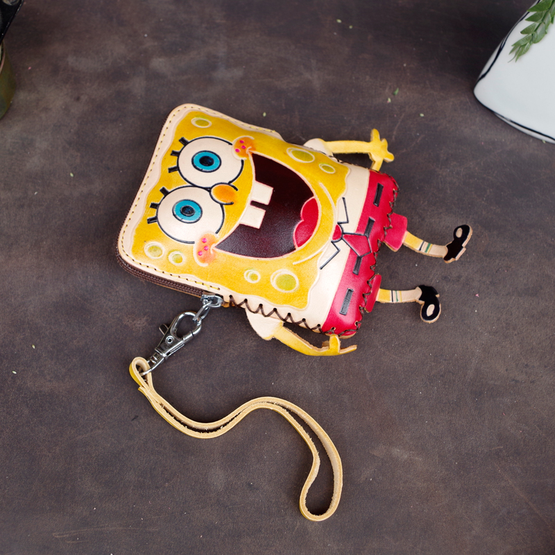 SpongeBob SquarePants leather coin purse leather shoulder messenger small bag children cute mini bag key chain small wallet