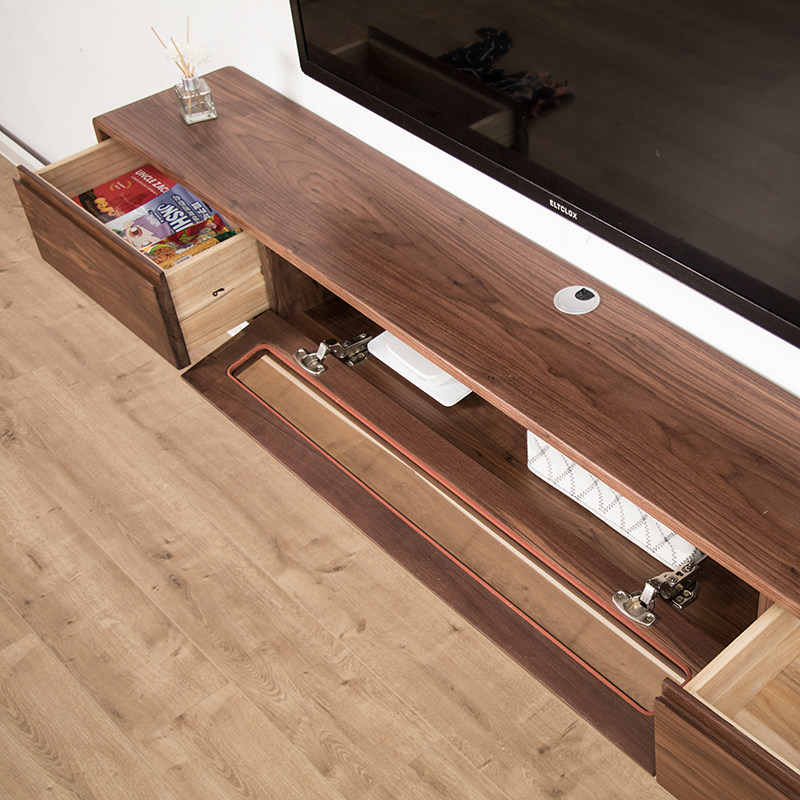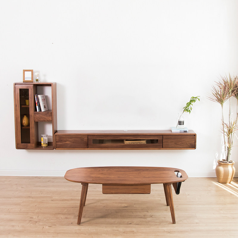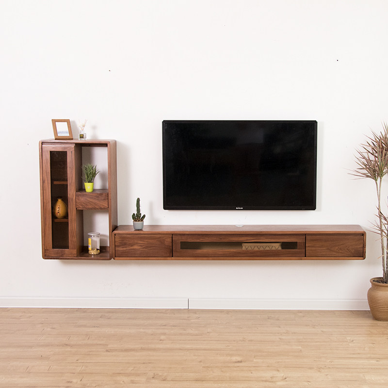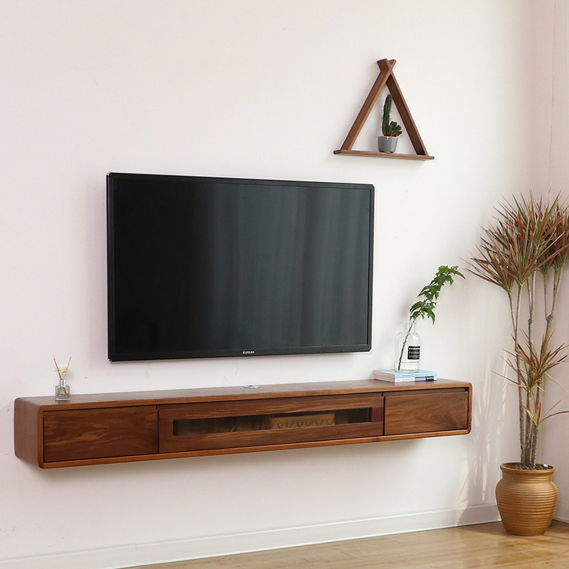 Wall-mounted TV cabinet Wall-mounted solid wood small apartment type ultra-narrow walnut bedroom hanging hanging creative wall hanging cabinet