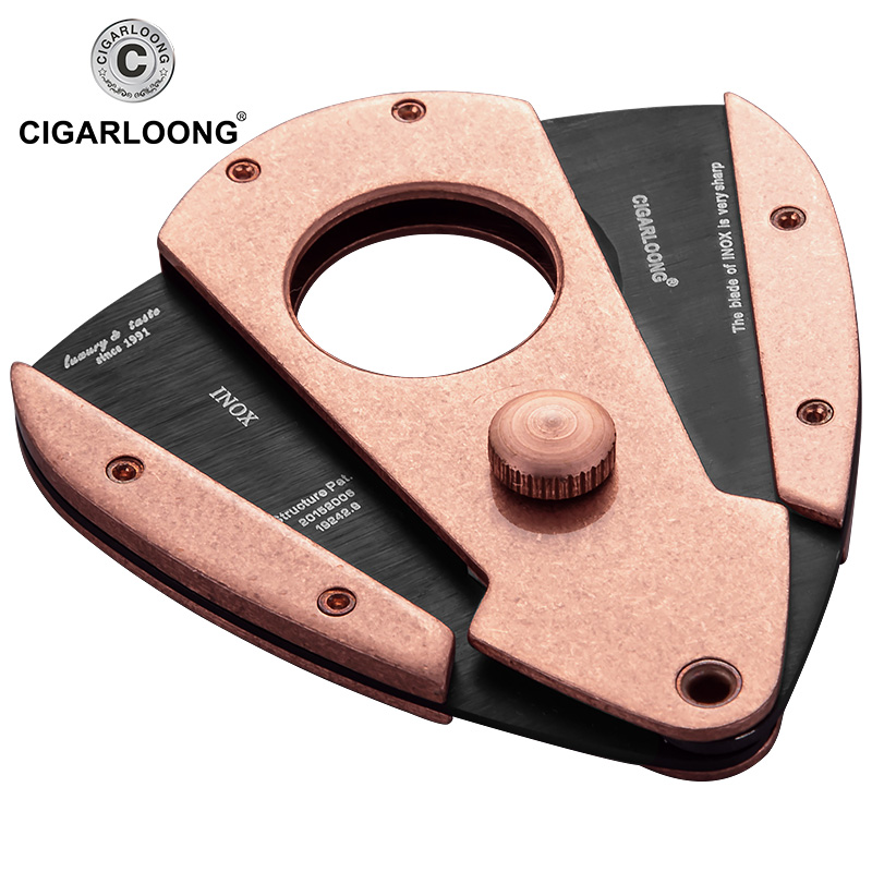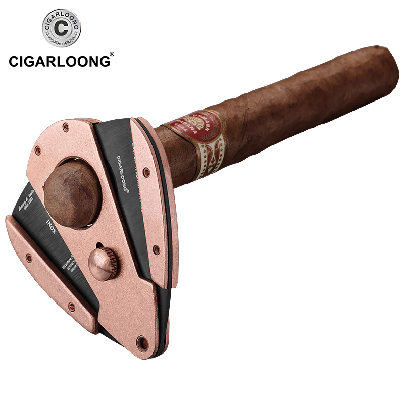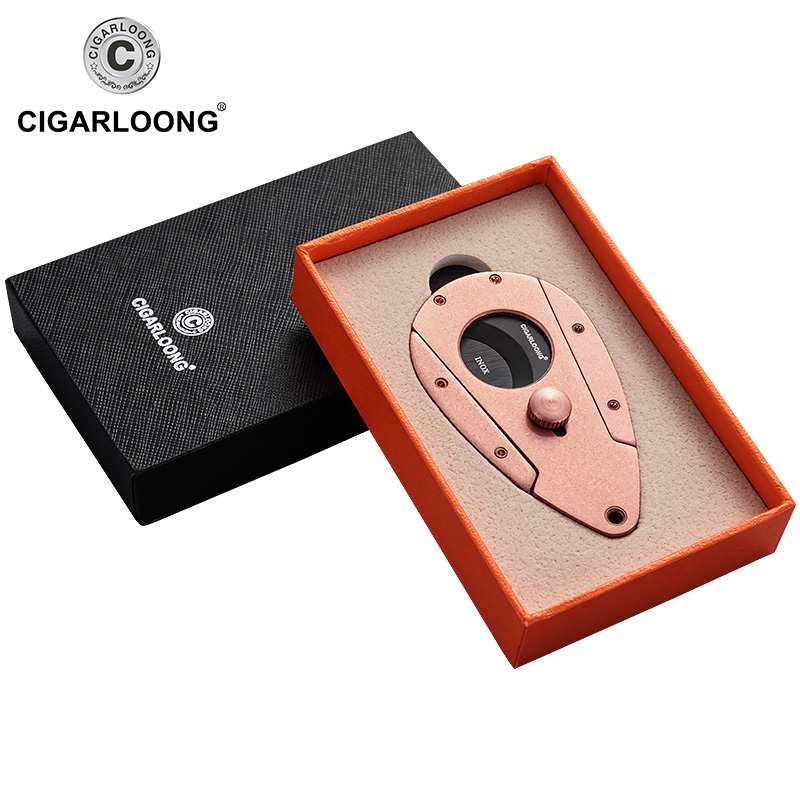 CIGARLOONG EGGPLANT CIGAR CUT CIGAR KNIFE STAINLESS STEEL TRAVEL PORTABLE DOUBLE EDGED FROSTED GIFT BOX PACKAGING