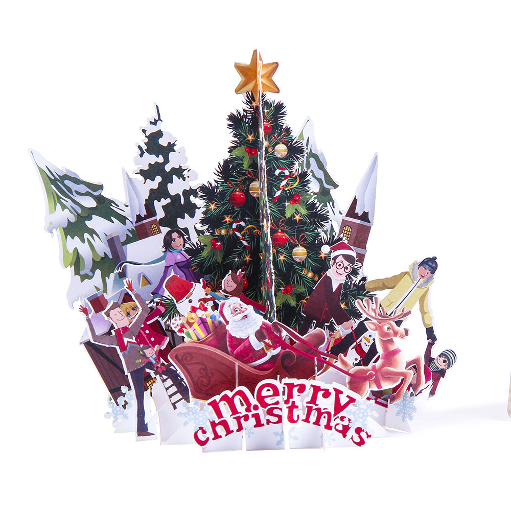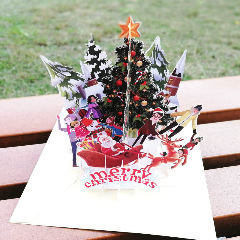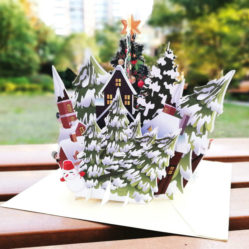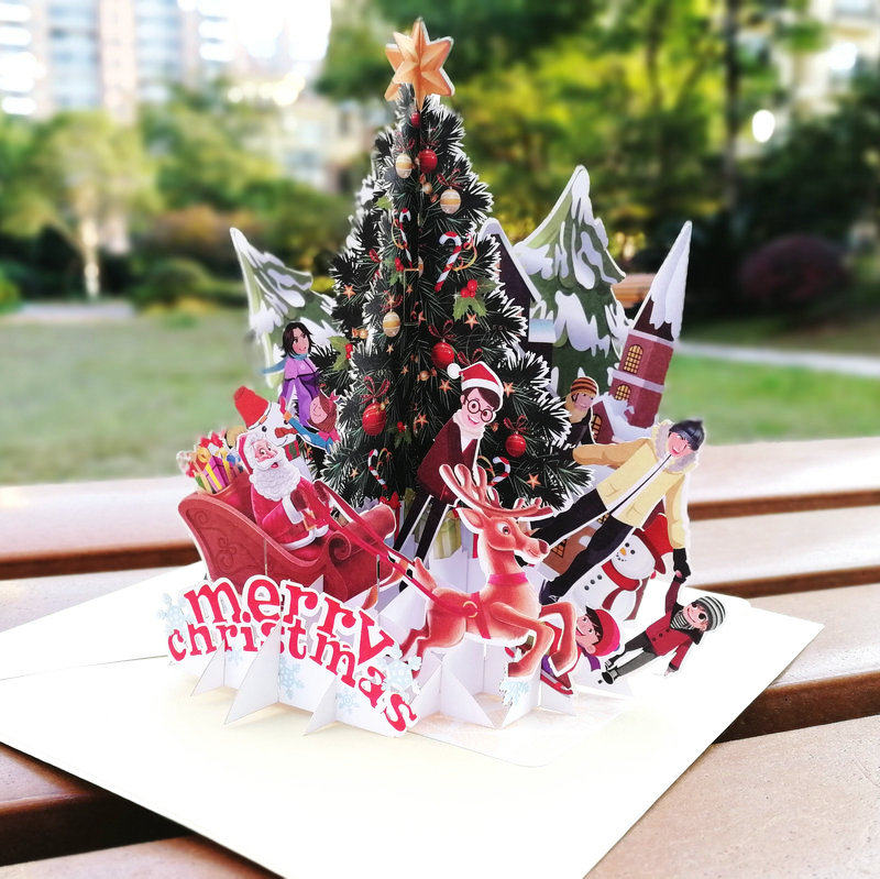 Personality original creative blessing Christmas greeting card 3D paper carving three-dimensional Christmas Eve party card Christmas scene greeting card