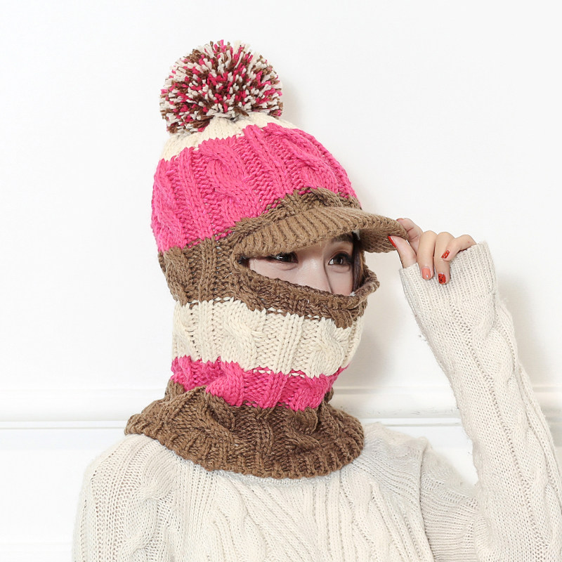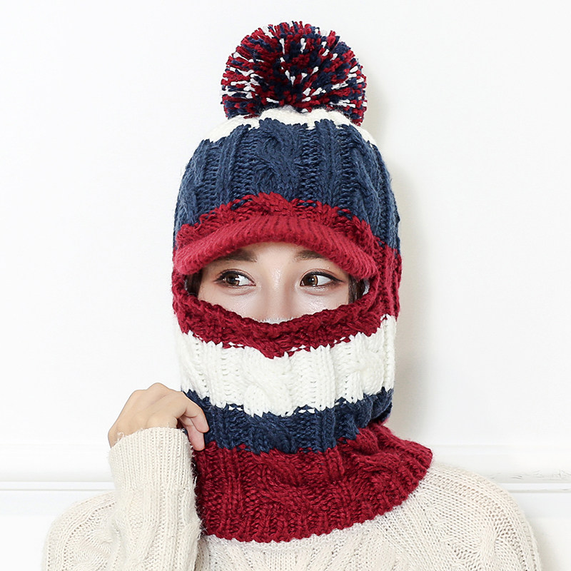 Winter hat women's knitted hat outdoor cold hat plus velvet wool hat cycling thickened windproof hat ski warm hat
