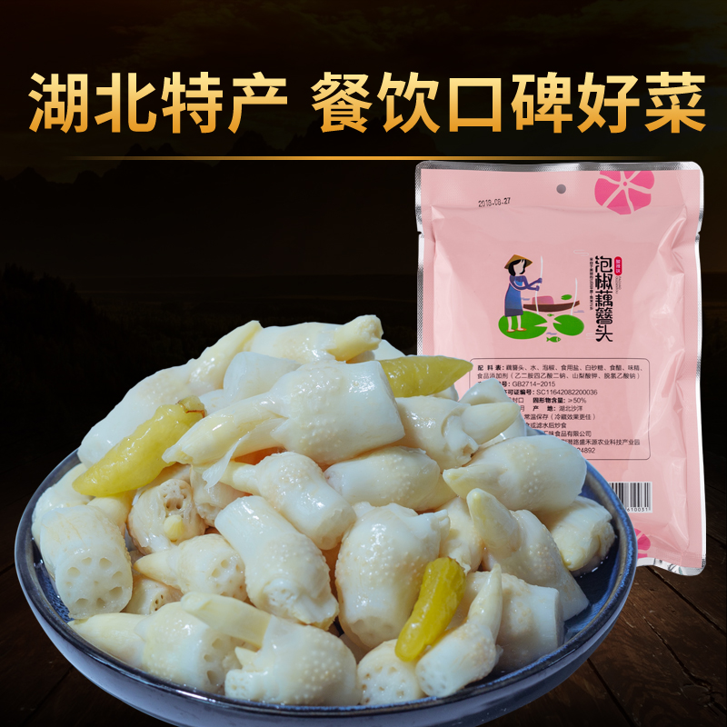 Fresh lotus root with purified water, millet pepper, white vinegar, salt, white sugar, monosodium glutamate, etc.
