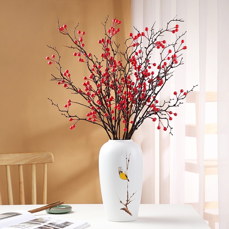 Single-branched red berries (trumpet) single yellow berries (trumpet) small size berries (3 red) small size berries (3 yellow) 5 red trumpet berries Zen Serie vases 5 yellow small size berries