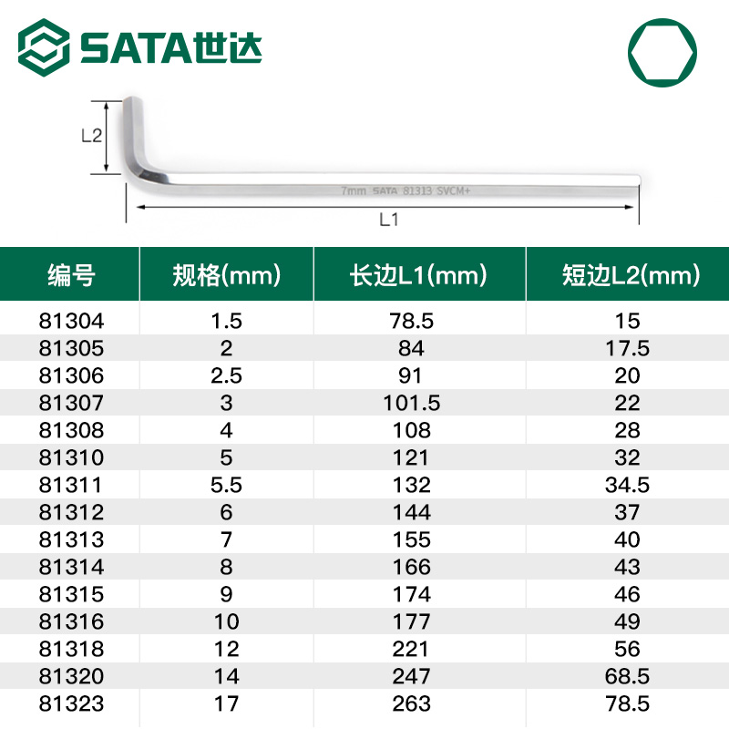 Seda inner hexagon wrench single lengthened flat head 1 5 2 5 3 6 7 8910 12 14 17mm 17mm