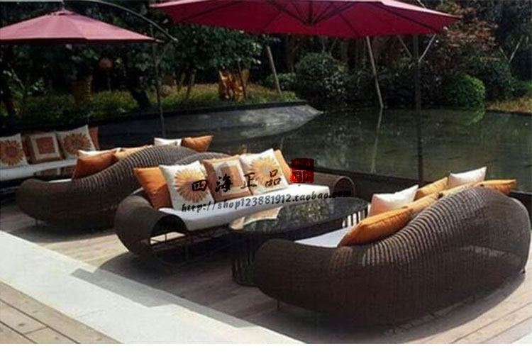 Outdoor indoor rattan sofa project curved rattan sofa sample house exhibition center company rattan sofa living room club rattan sofa