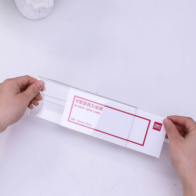 Deli 9293 Acrylic seat card table card Stand card V-shaped table card double-sided table card display card Transparent table card name card Conference card table card table label card table number card seat card Triangle card