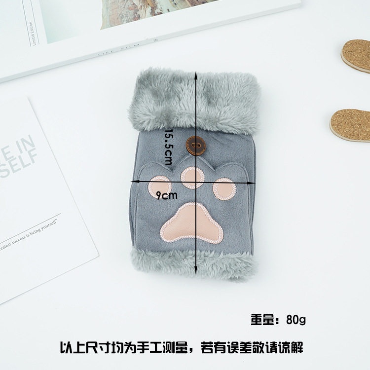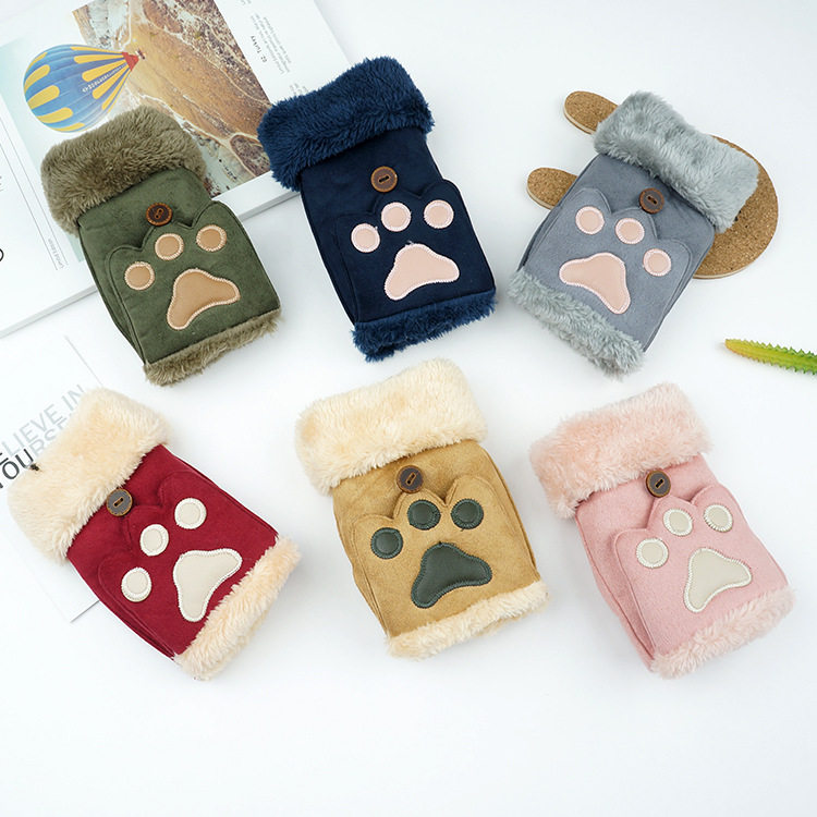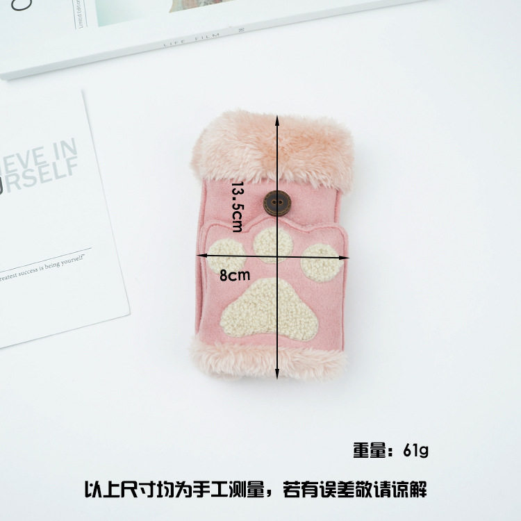 Recommended parent-child Shengqi 2017 hot suede Korean cartoon dog claw half finger flip warm gloves
