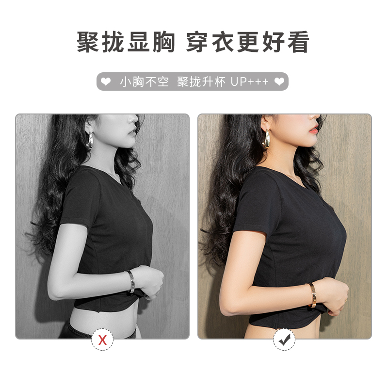 Black No-ring Steel Ring Thickened bra Pine Breast Poly-Adjusted Underwear Small Breast Bra Woman Super Thick Summer