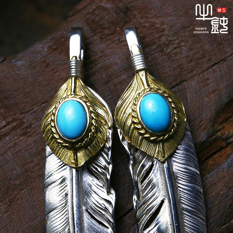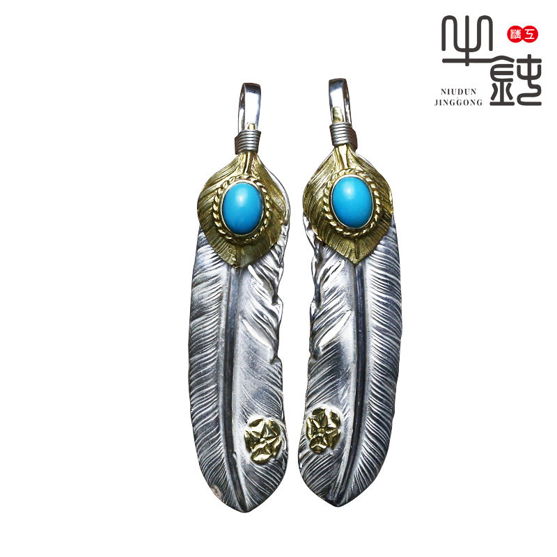 Left feather 925 Pure silver Pure copper (yellow part) Right feather 925 Pure silver Pure copper (yellow part) Left feather 925 Pure silver 18K gold (yellow part) Right feather 925 Pure