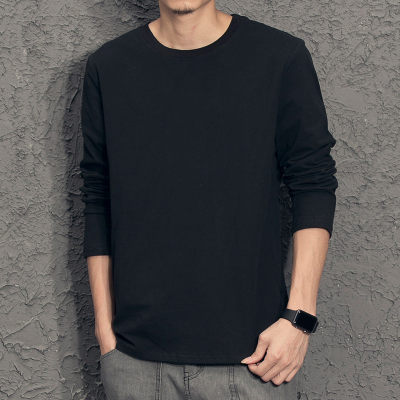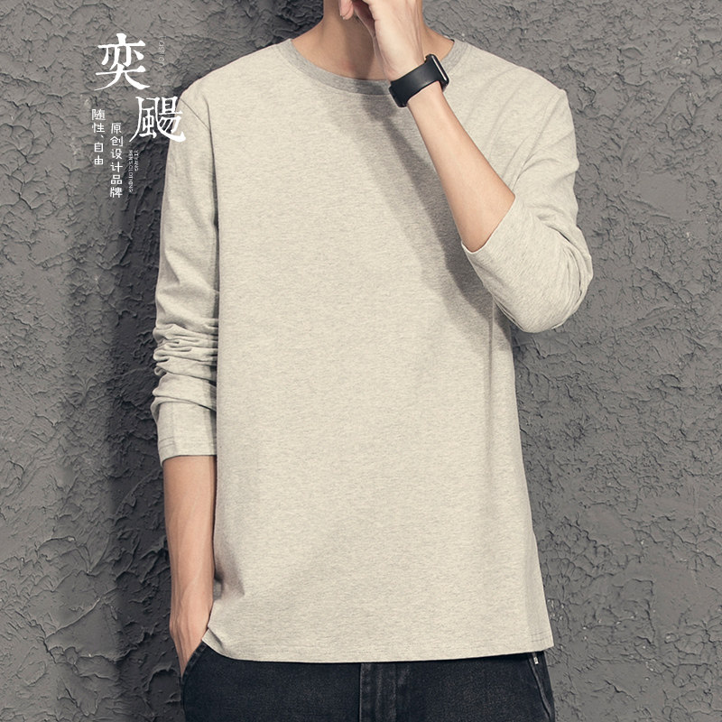 Original 2021 fall cotton quality autumn jersey undershirt men's day department white minimalist T-shirt round neck long sleeve T-shirt
