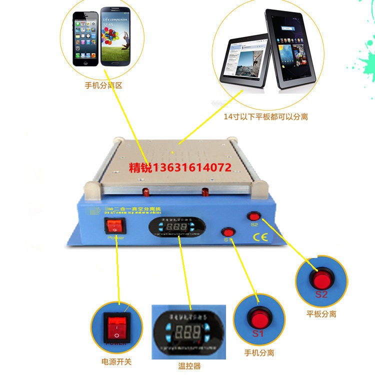 14-inch mobile phone tablet separator LCD screen dismantling machine blue shell flat suction separator built-in pump