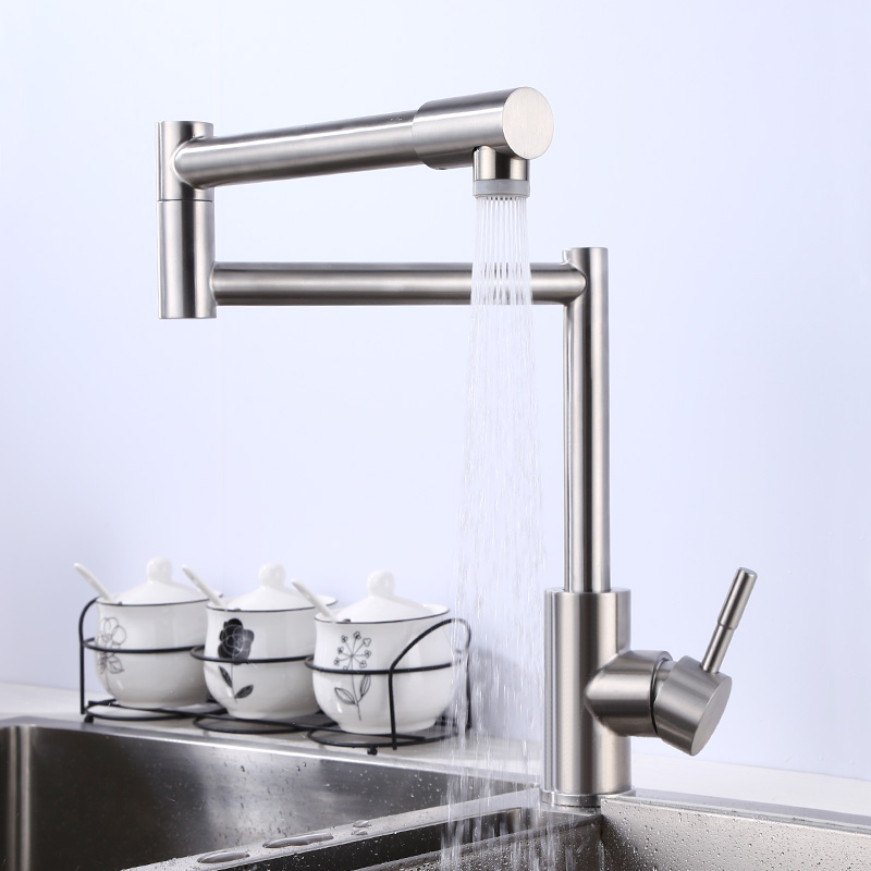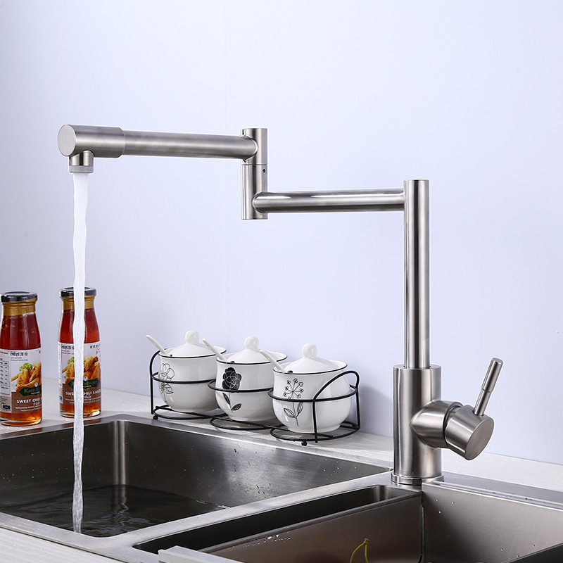 Folding hot and cold water faucet kitchen sink sink can rotate 304 stainless steel rotating telescopic extension faucet