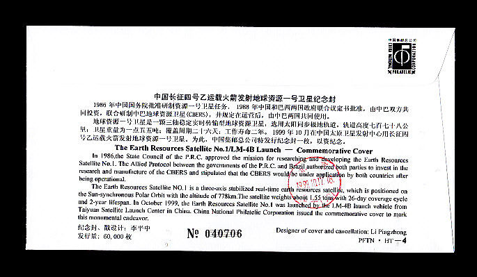 PFTN·HT-4 China Long March 4B carrier rocket to launch the Earth Resources-1 satellite commemorative envelope