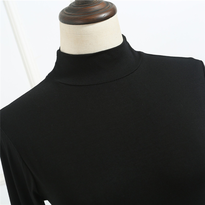Spring autumn and winter Women's Modale Half high collar Long sleeves Inner Lap Coat High Elasticity Soft And Thin style Body Pure Color Single Autumn Clothes