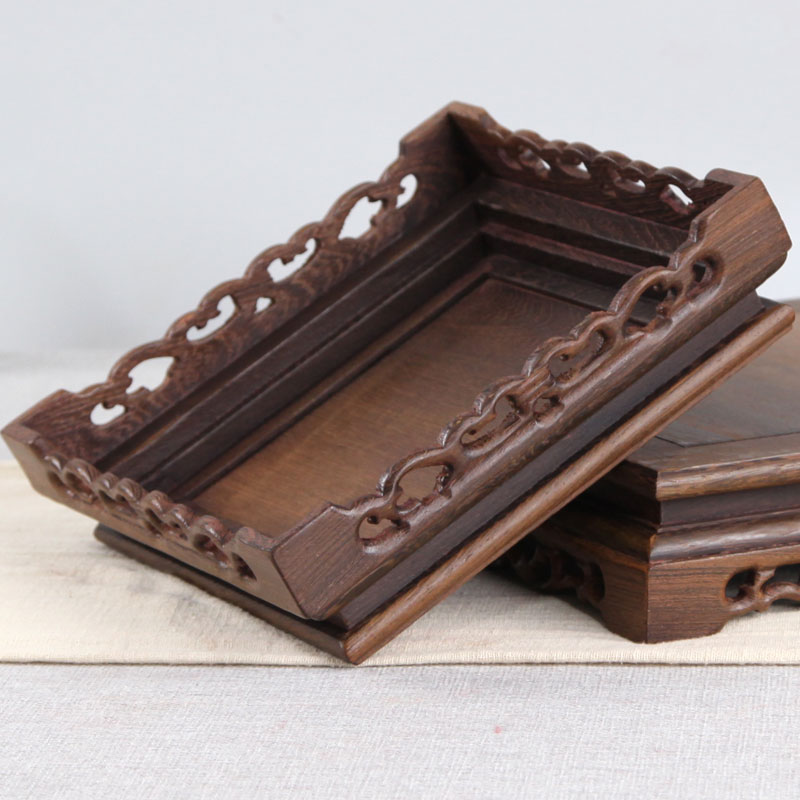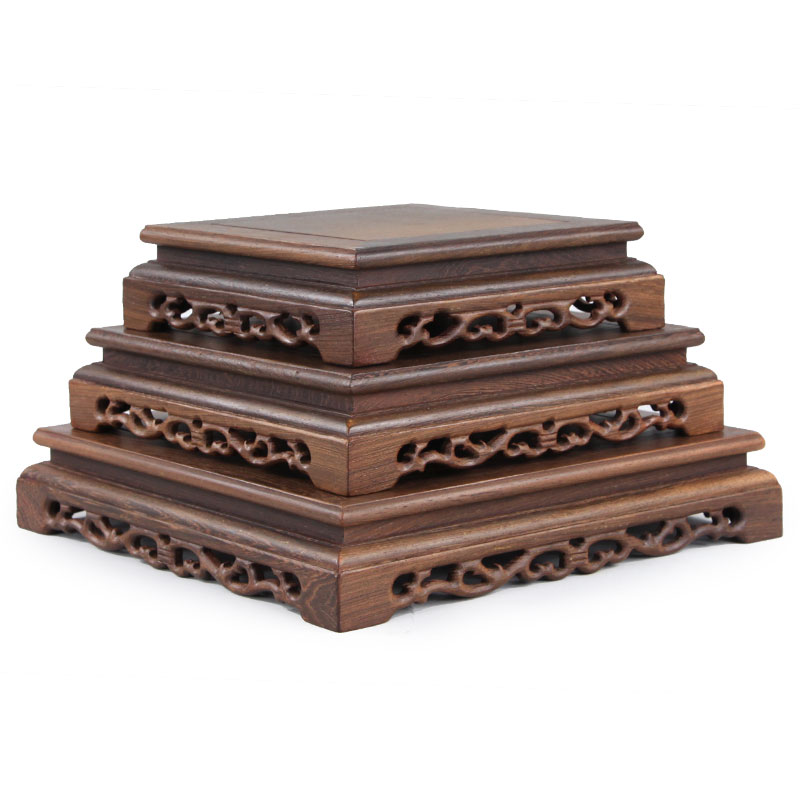 Mahogany base Solid wood carving crafts Square ornament base Stone stone Buddha statue Vase flower pot base