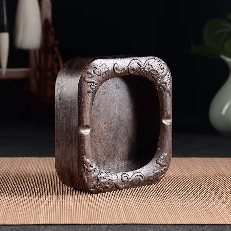 Red Wood Tobacco Ashtray Black Sandalwood Tobacco Cylinder Solid Wood Chinese Imitation Ancient Wood Cigarette Ash-Antique Wood Wood Black Sandalwood