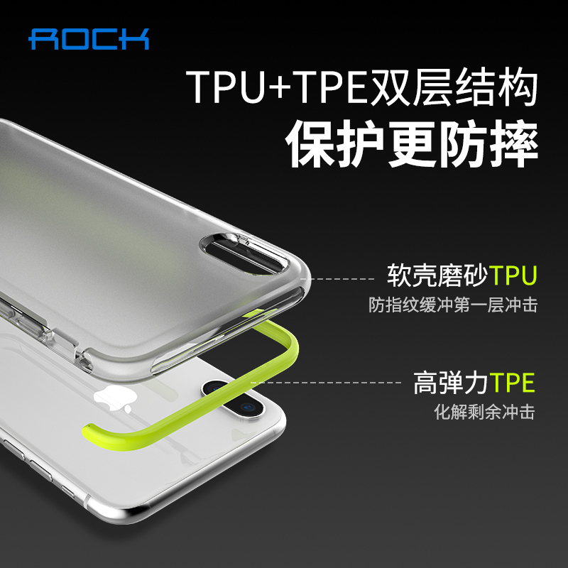 ROCK Apple X mobile phone case iPhonexsmax transparent matte XR airbag all-inclusive drop-proof Xs Max soft case liquid silicone 8x shell trendy brand female and male black and white simple protective case
