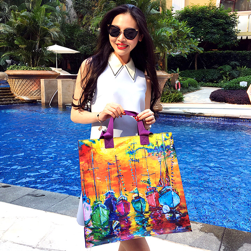 European and American oil painting waterproof student load book carry file zipper bag large capacity handheld illustration shopping bag women's bag