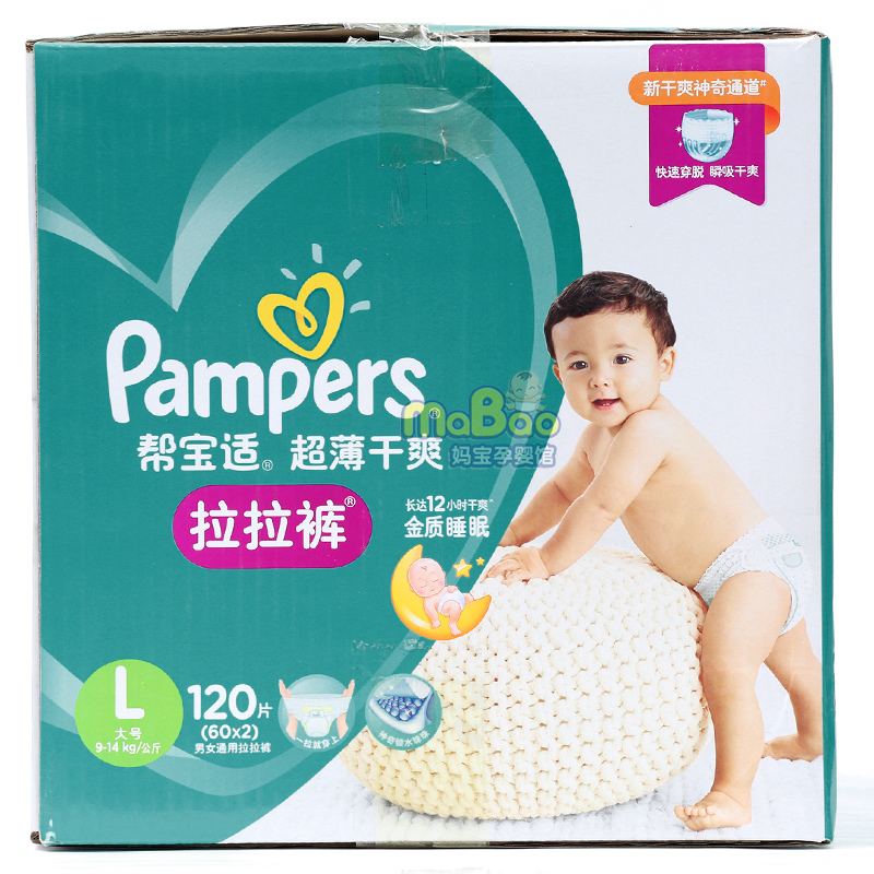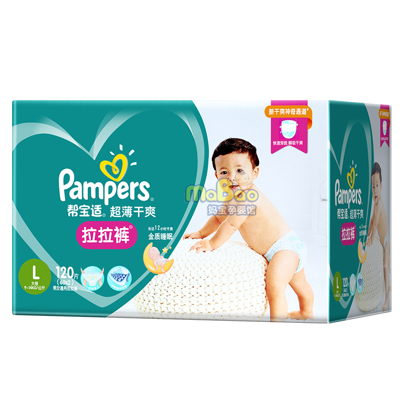 Pampers ultra-thin dry green help baby baby pull pants diaper diaper large L120 pieces