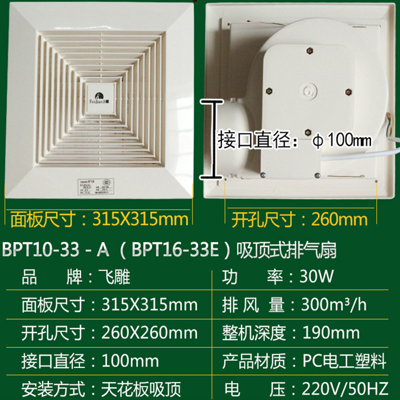 Flying carving high-power exhaust ventilator hanging ceiling type BPT10-33-A 16-33E panel 315 drilling 260