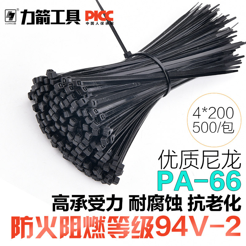 Force Arrow ties nylon 4 * 200mm black 500 strips of fixed ties plastic self-locked buckle strapping with harness