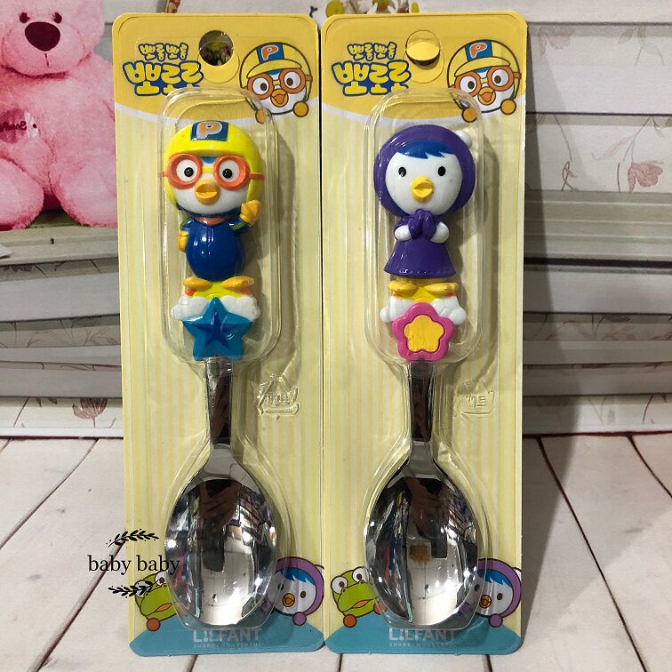 Pororo Bolero South Korea imported children's cute spoon little penguin baby stainless steel rice spoon fork