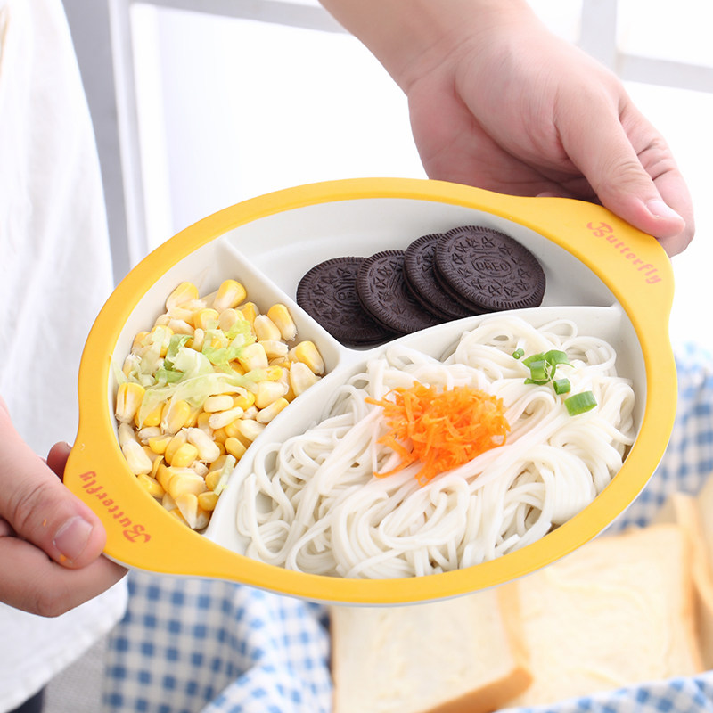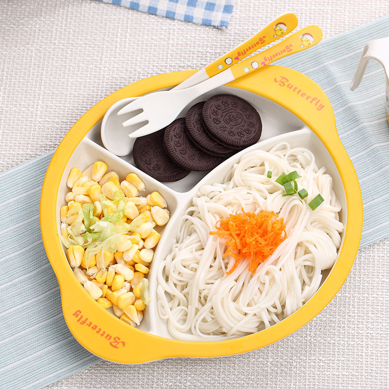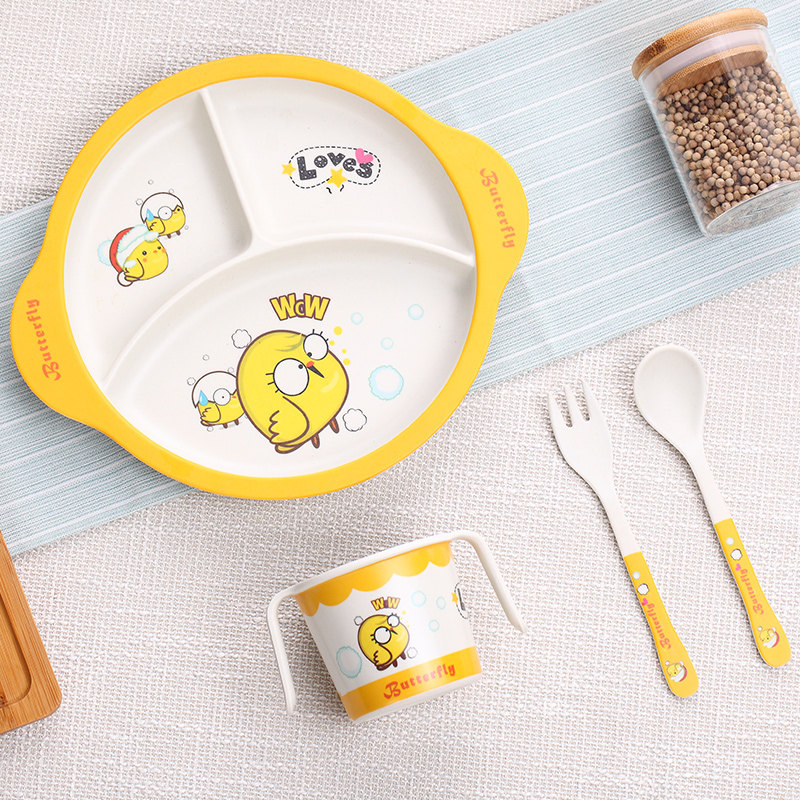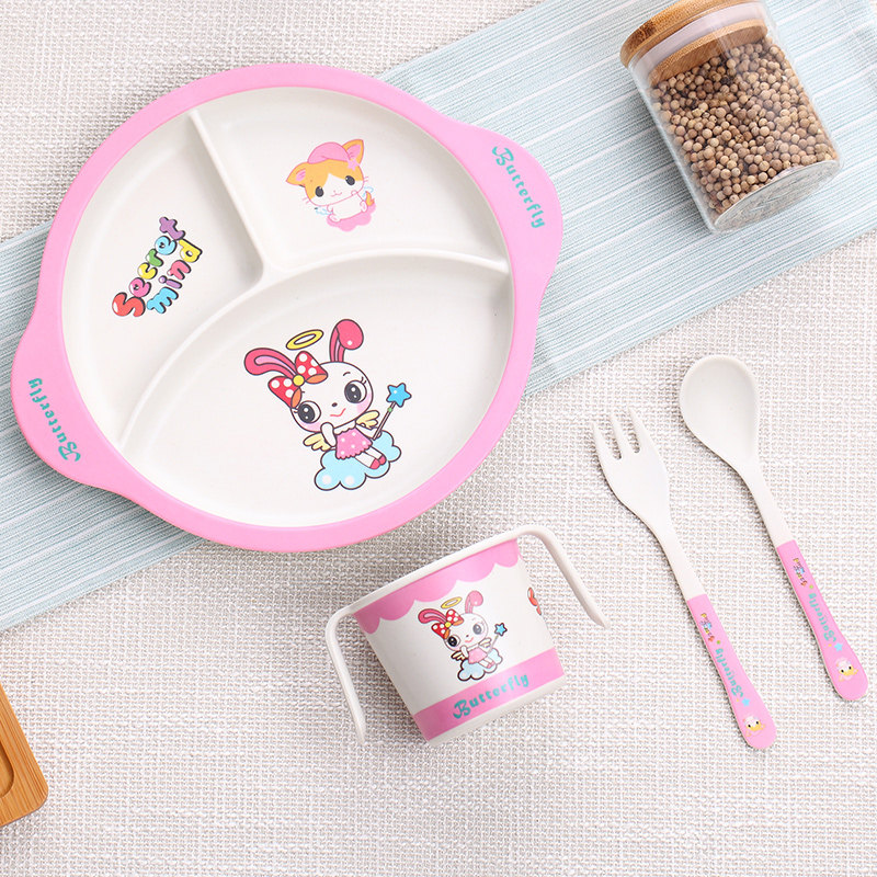 Bamboo Fiber Children Cutlery Dinner Sidefood Bowl Baby Dinner Plate Baby Divided Cartoon Rice Bowl Fork Spoon Suit