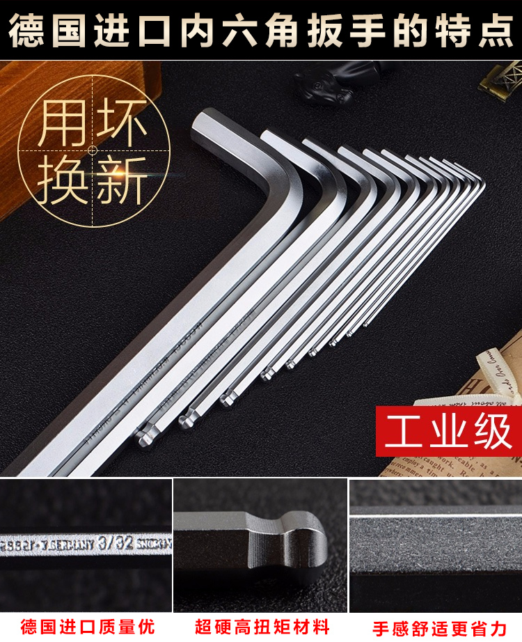 High hardness inner hexagon wrench alloy steel ball head lengthened 6 square 1 5mm2 5mm3mm4mm5mm6mm8mm