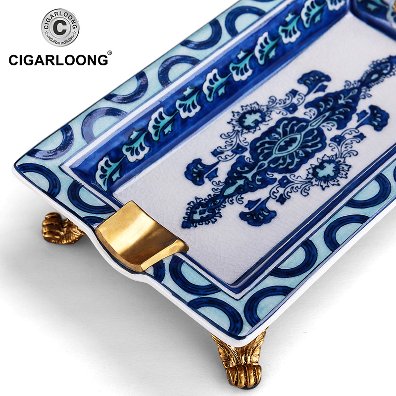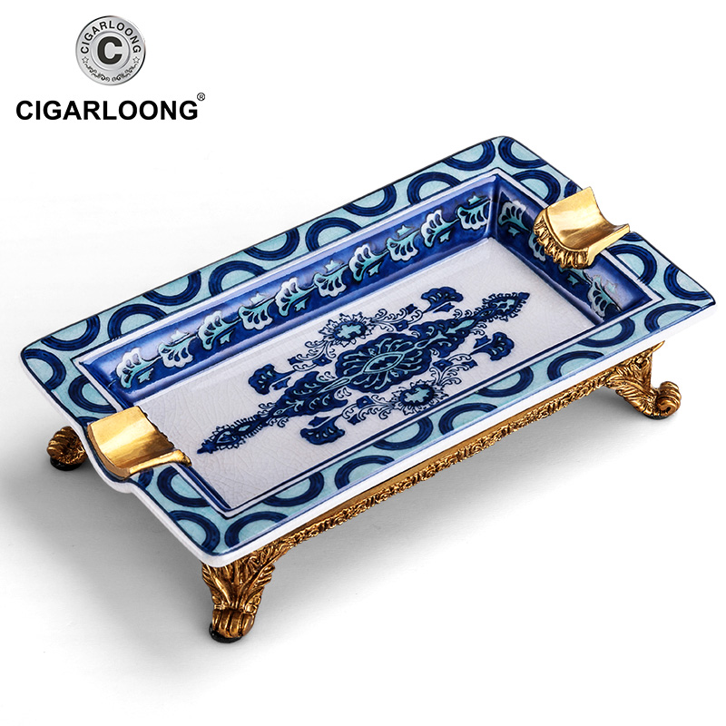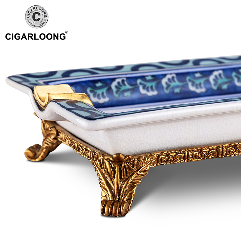 Eggplant Cigar Tobacco Ashtray Ceramic Eurostyle Green Flower Porcelain Sculpture Flowers Red Copper Base Large Caliber Cigarette Ash AH-1060