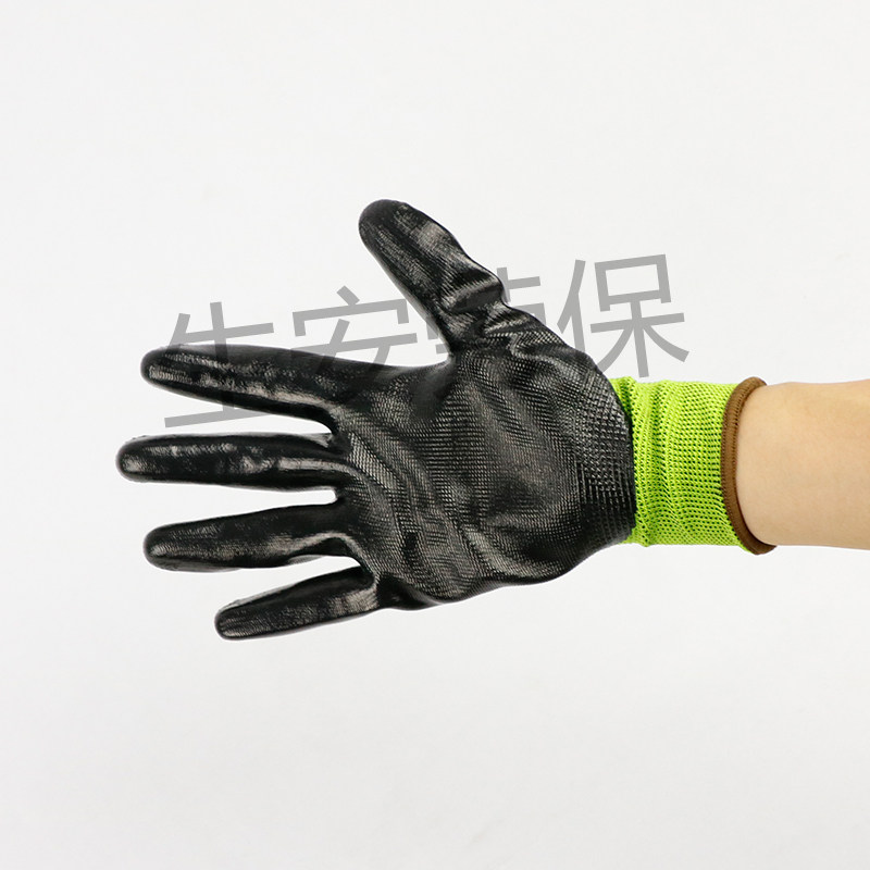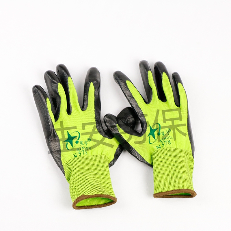 12 Double Star Yu N578 Nylon black rubber Ding clear rubber palm soaked gloves abrasion-proof anti-oil and anti-cut waterproof gloves