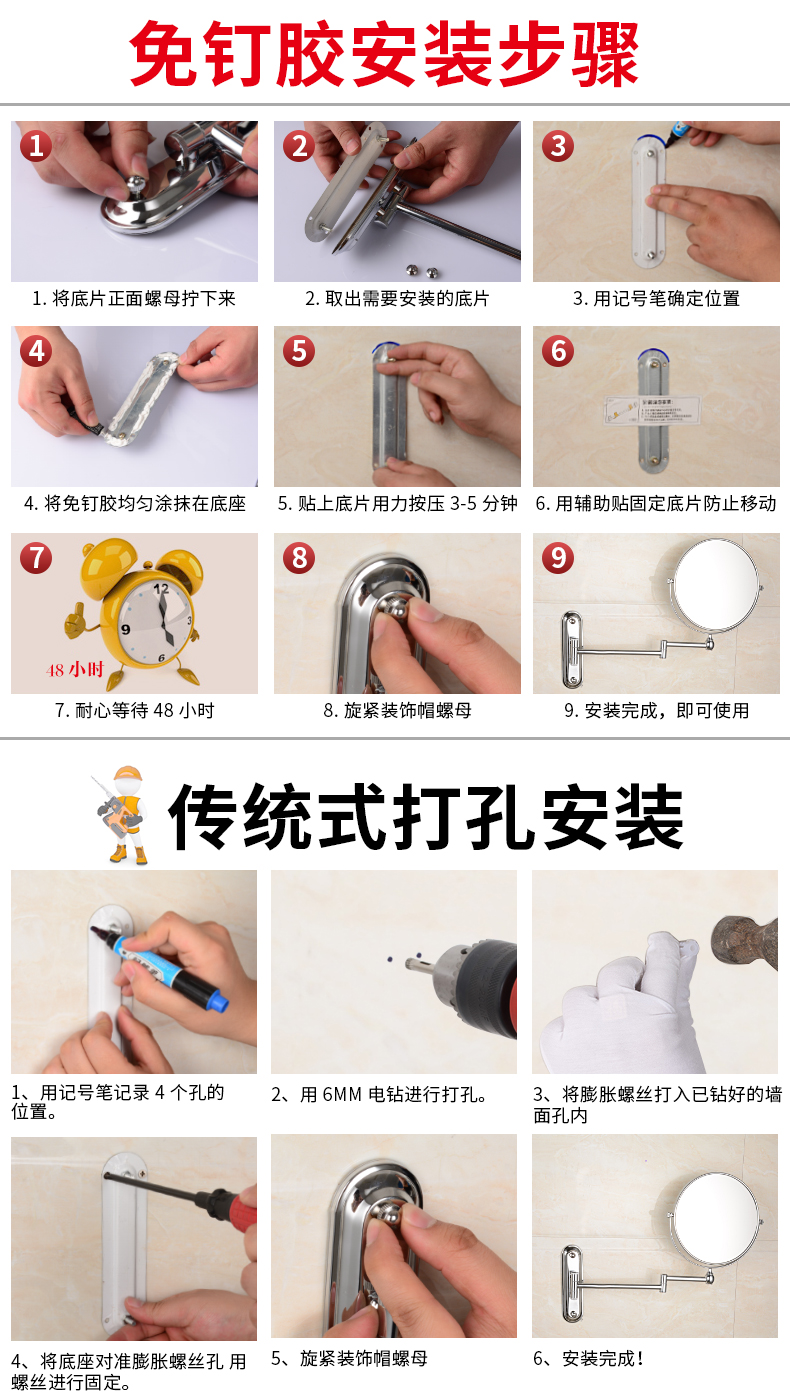 Hotel bathroom mirror wall mounted beauty mirror folding mirror toilet rotating push and pull makeup mirror free punch hole