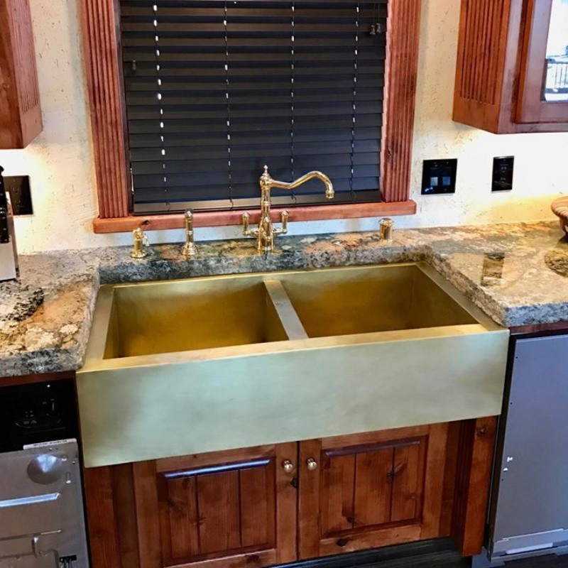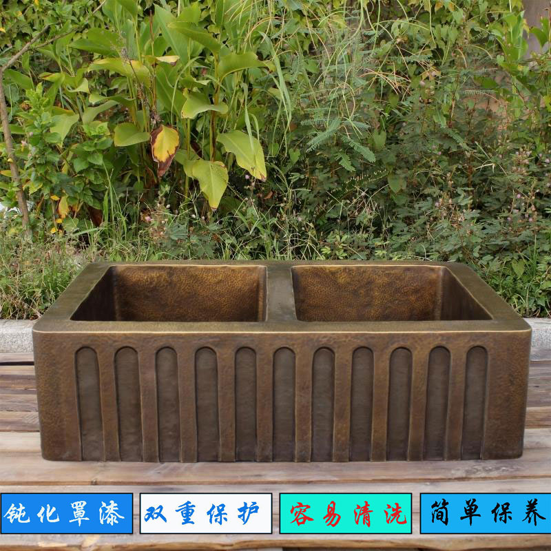 Villa Kitchen Copper Sink Double Sink Import Co-Ancient Nostalgia Exhibition Hall Middle Island Bar Counter Designers Bronze Dishwashing Trough