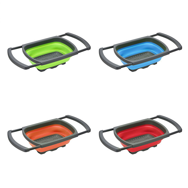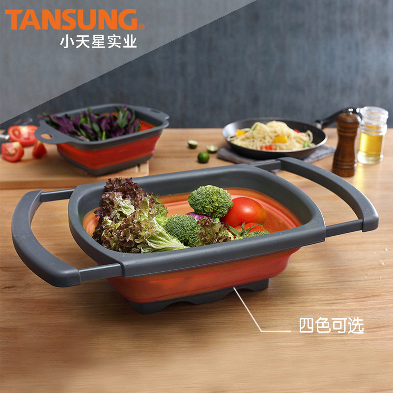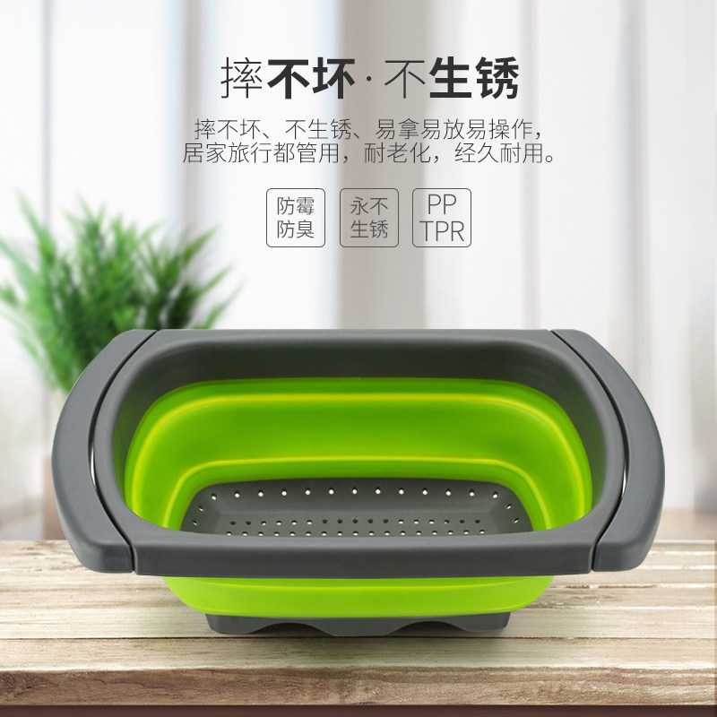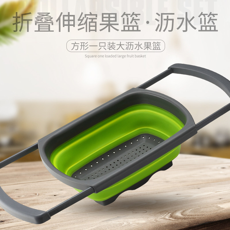 Silicone washing fruit basket foldable outdoor kitchen drain fruit basket basin rectangular storage fruit dish washing basin