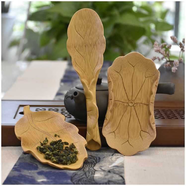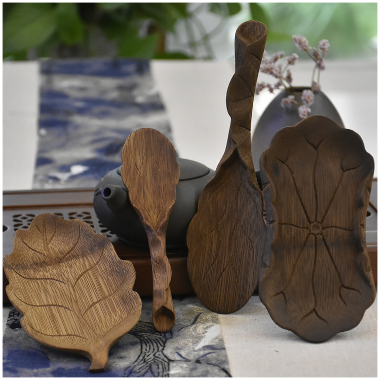 Bamboo tea spoon Tea lotus carved tea Old Bamboo tea shovel Six gentleman teaspoons Coaster cup holder Tea Ceremony