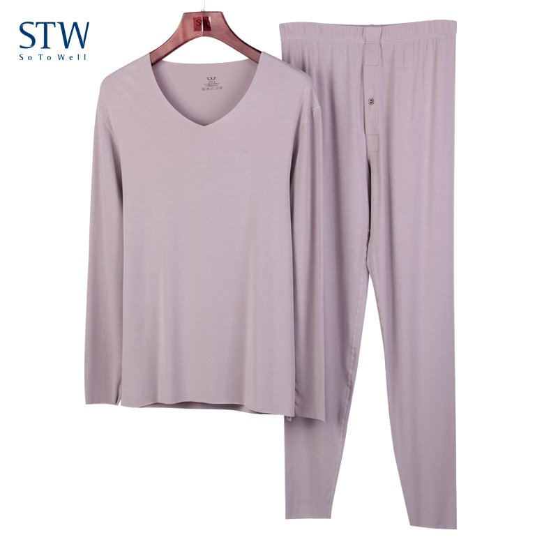 STW men's autumn clothes sanitary pants suit Modal incognito heating clothes Loose V-neck base shirt Sanitary clothes Sanitary pants