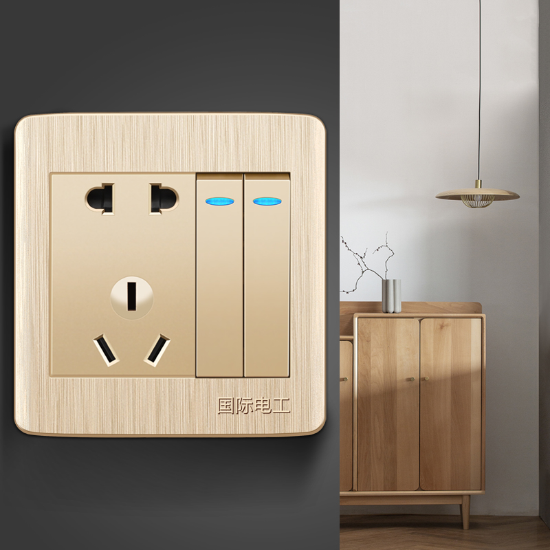 (two open double control five hole) international electrician 86 switch socket panel household five hole socket with switch