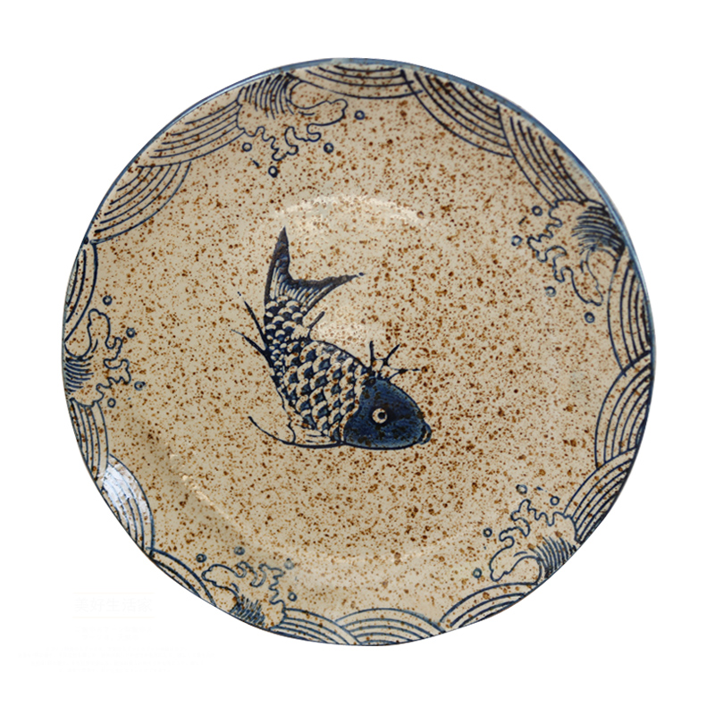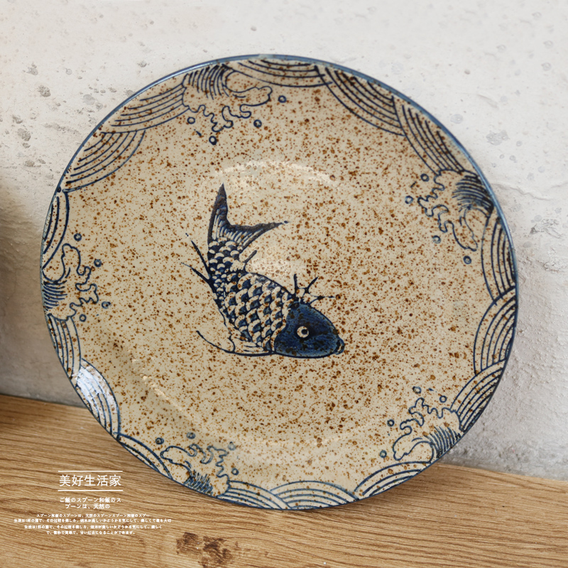 Japanese tableware retro creative ceramic plate plate disc home dessert plate fruit plate flat plate western plate