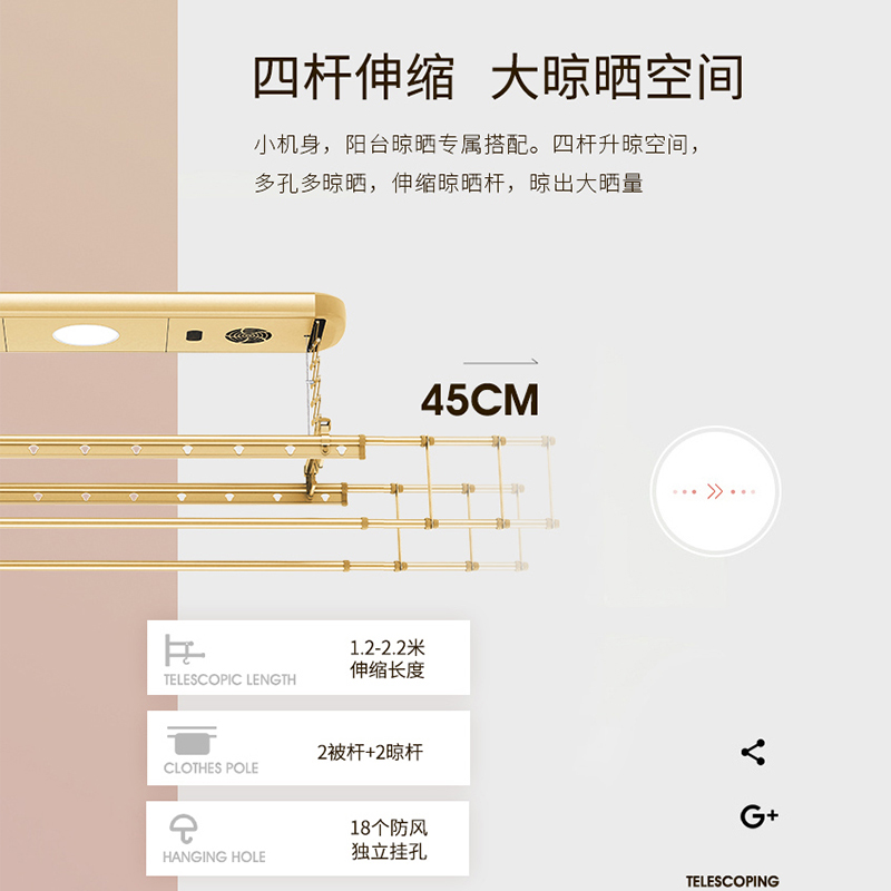1 2 m Host 2 2 m Clothes Rod 4 Poles Disinfection Air-dried LED Modern Gold (Support Ali Intelligence)