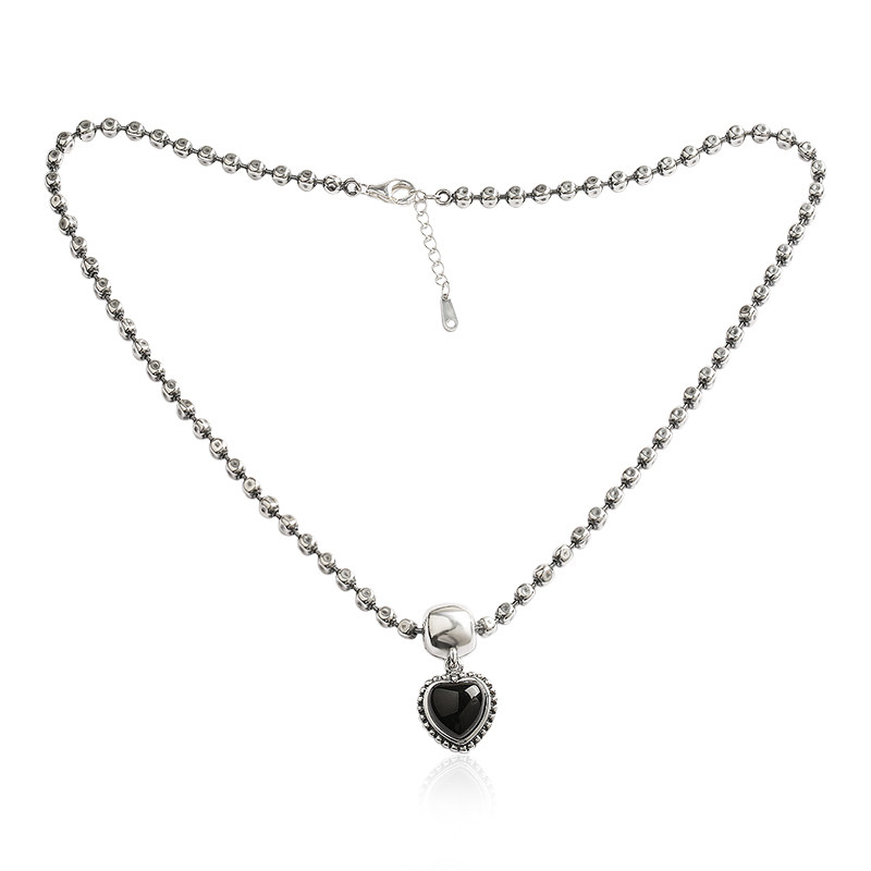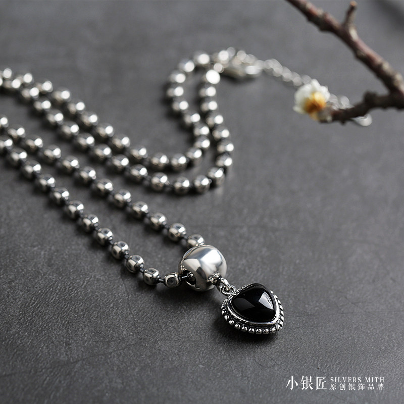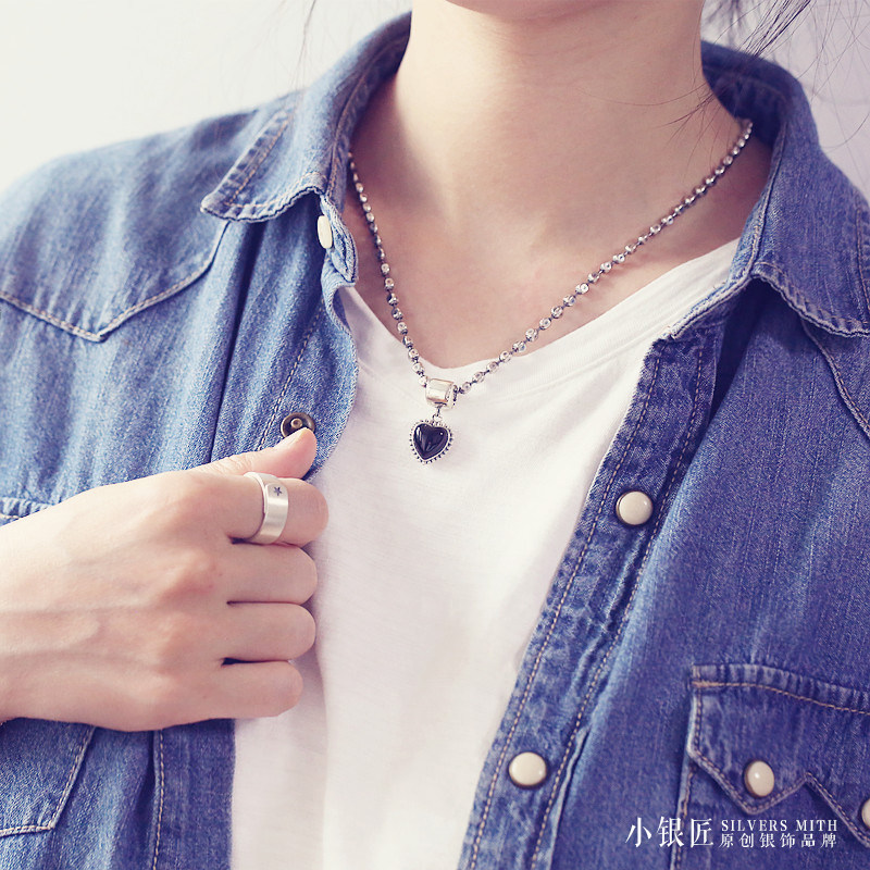 Small silversmith natural Black Manau 925 pure silver necklace female fine print to make old fashion Thai silver short Lock Bone Chain