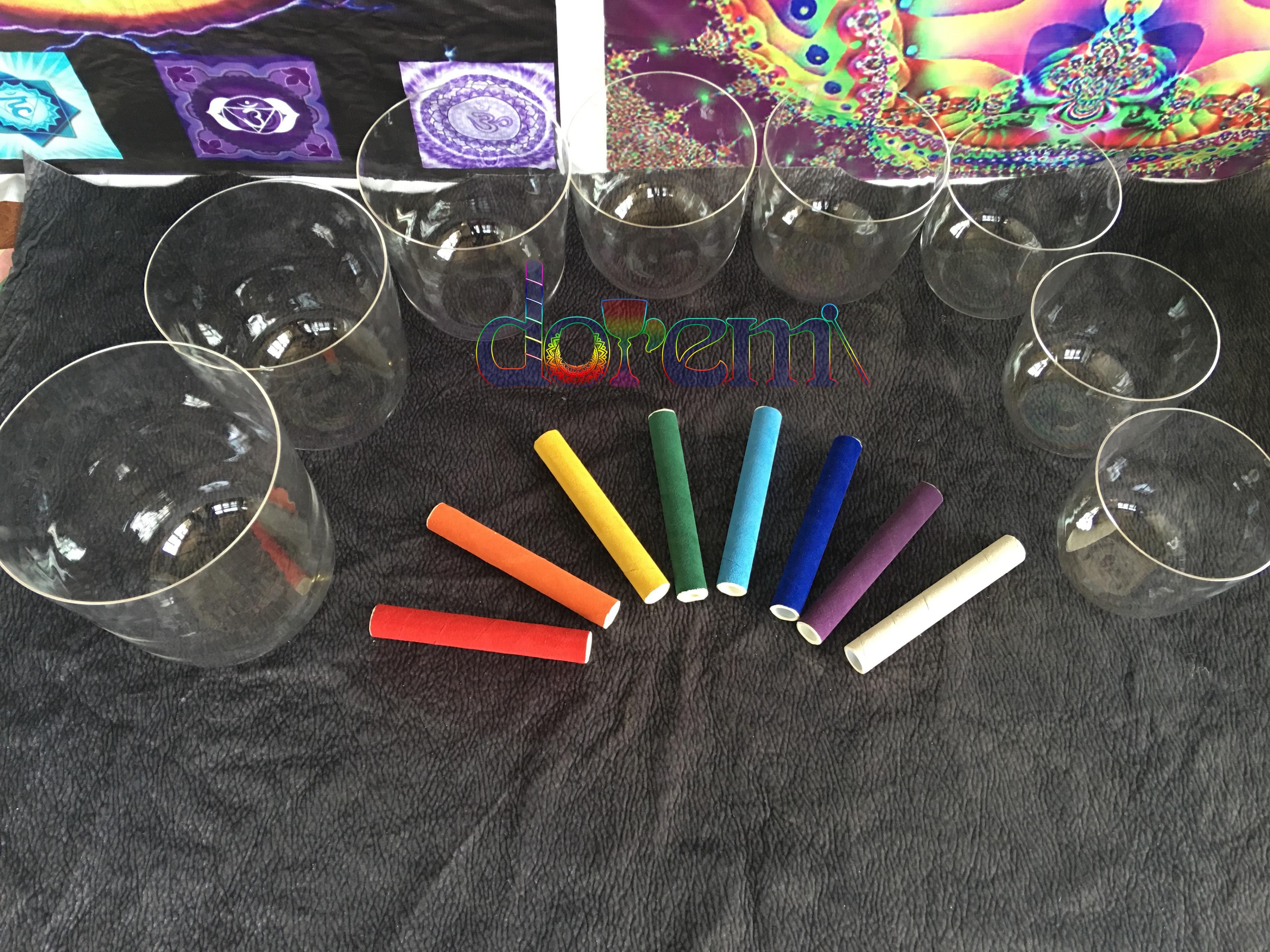 Factory direct supply handmade transparent crystal bowl singing bowl third tone set CDEFGABC bass meditation bowl
