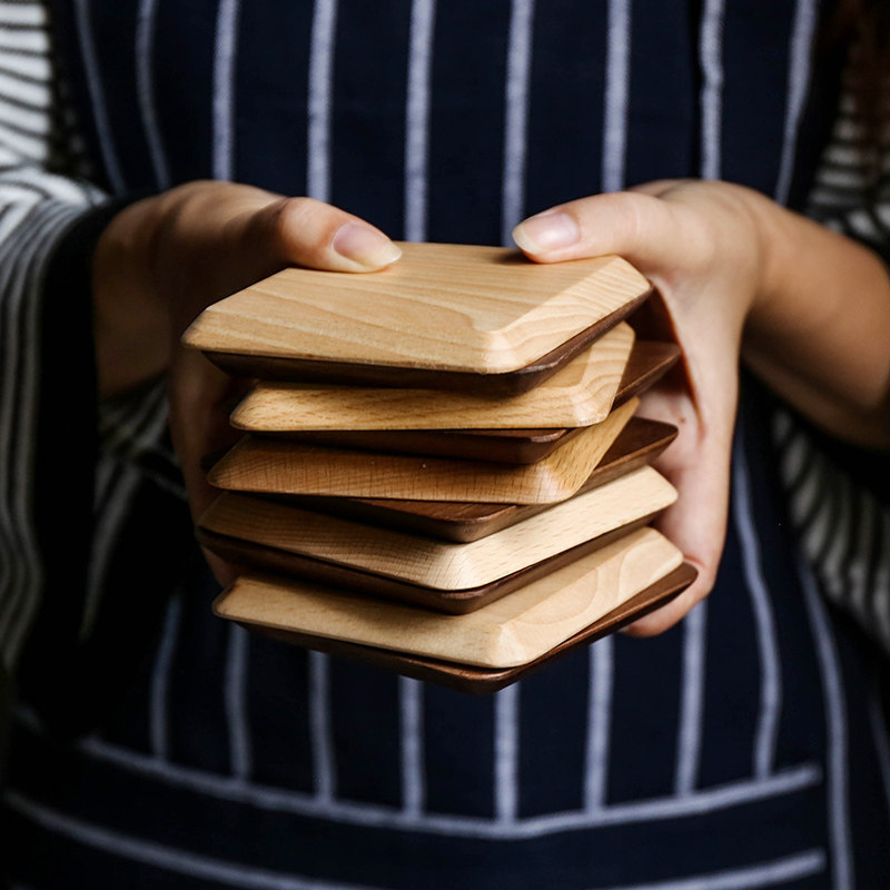 Sheri square black walnuts solid wood tea cup cushion beech wood heat insulation cushion cups coffee cup cushion anti-heat cushion tea art gift