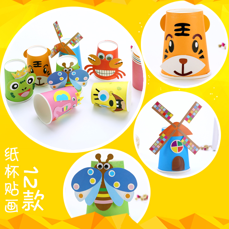 Children's paper cup painting handmade kindergarten creative sticker painting parent-child interactive animal paper cup paper plate toy