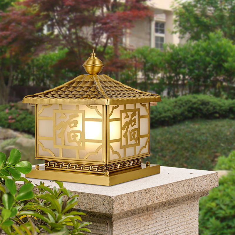 Total Copper Column Head Lamp Wall Lamp Gate Light access Electric Thickened Villa Courtyard Outdoor Waterproof Square Gate Column Lamp