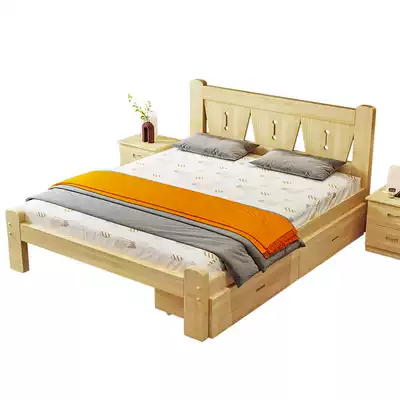 Solid wood bed Adult single bed Small apartment Simple modern small bed 1 meter 1 2 meters wooden bed 1 5 meters double bed