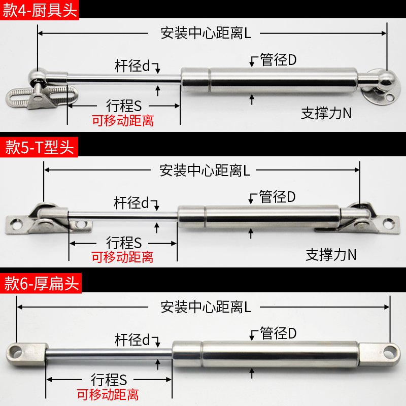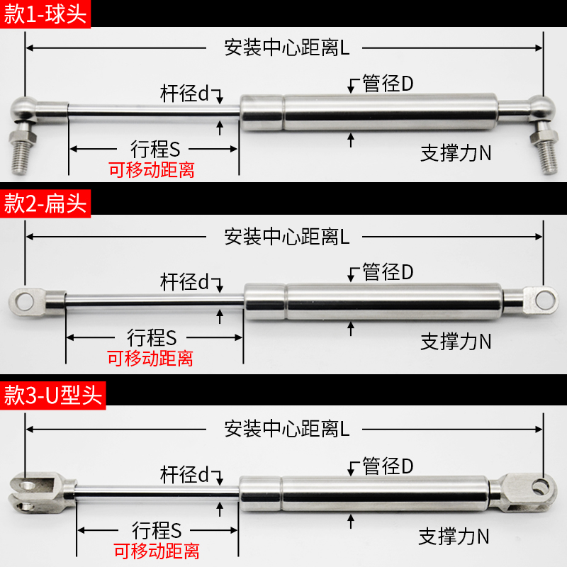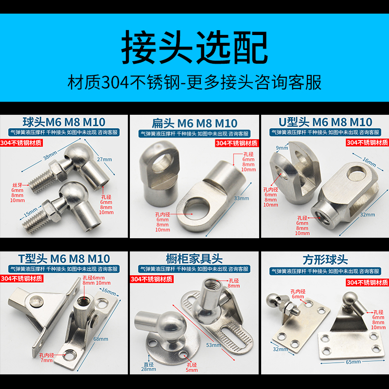 Hydraulic strut pneumatic strut pneumatic strut pneumatic lever pneumatic spring non-rust pneumatic bracing 304 stainless steel hydraulic rod support rod