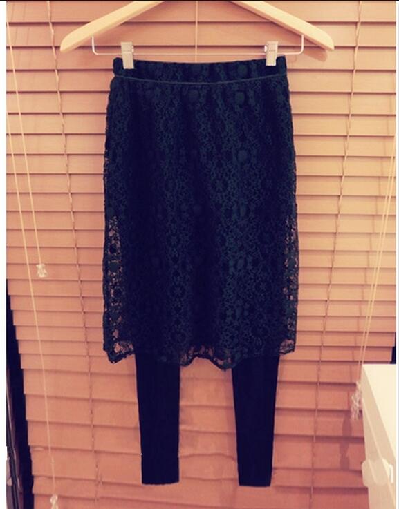 2021 spring new large size women's clothing fat MM thin lace patchwork modal inner pants fake two-piece skirt pants