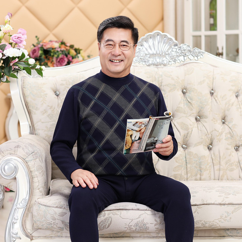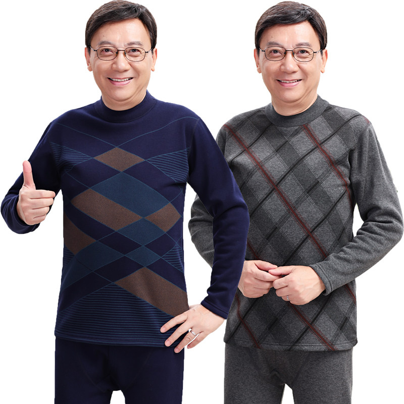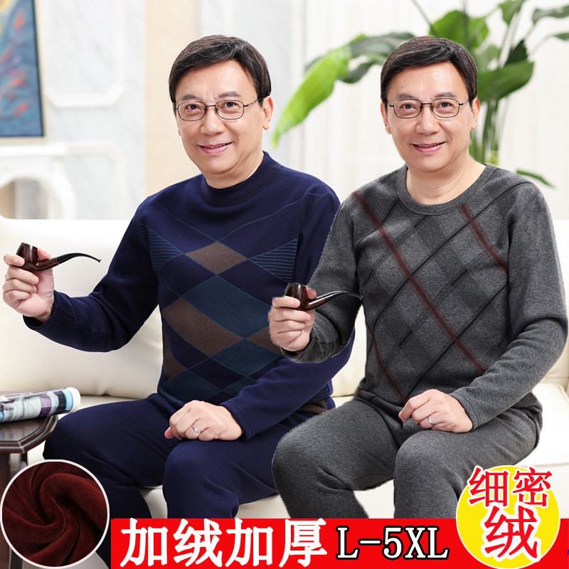 Men's thermal underwear with velvet and thick mid-high collar large size autumn clothes and johns middle-aged and elderly cotton warm suit for the elderly
