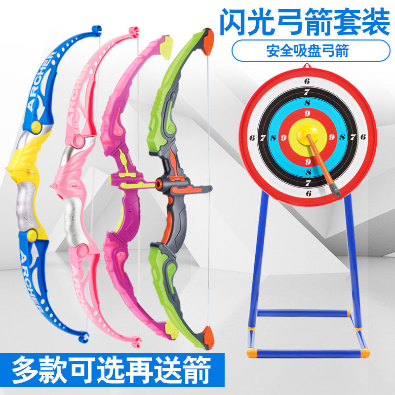 Kids boys and girls toy flash bow and arrow entry archery shooting set home user outside parent-child sports suction cup target