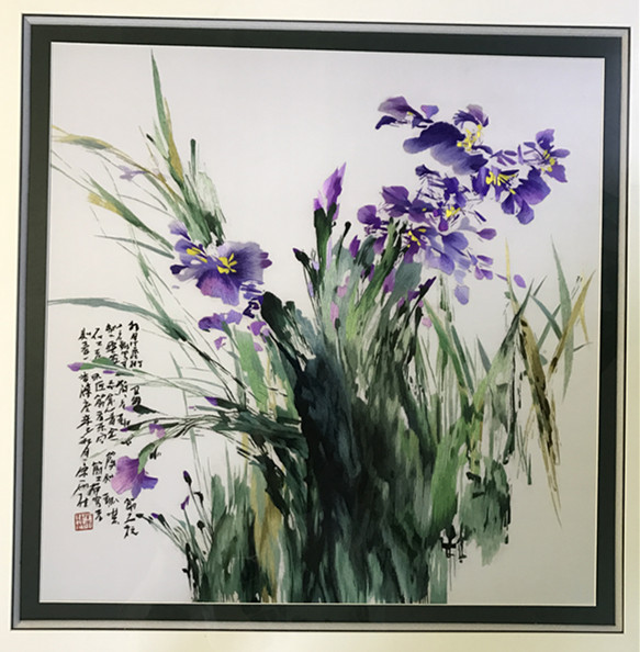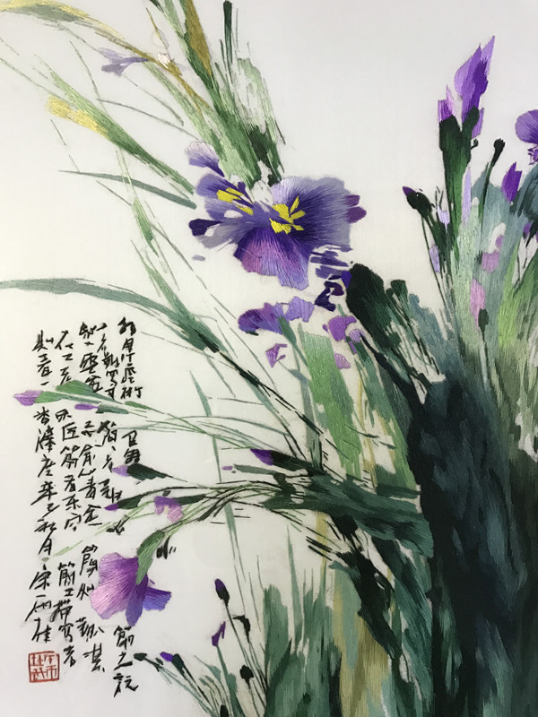 Pure handmade new boutique Suzhou embroidery painting Su embroidery finished product hanging painting Xuanguan decoration painting 5050 Lanflowers