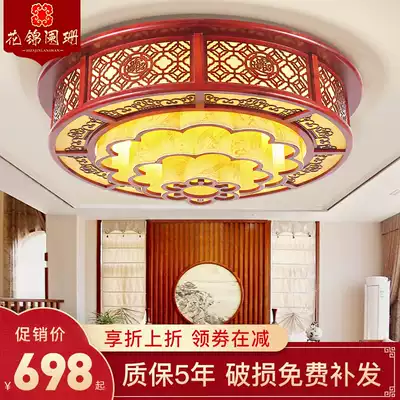 Chinese style solid wood ceiling lamp Antique modern atmosphere Living room dining room Round classical hotel Chinese style Teahouse chandelier